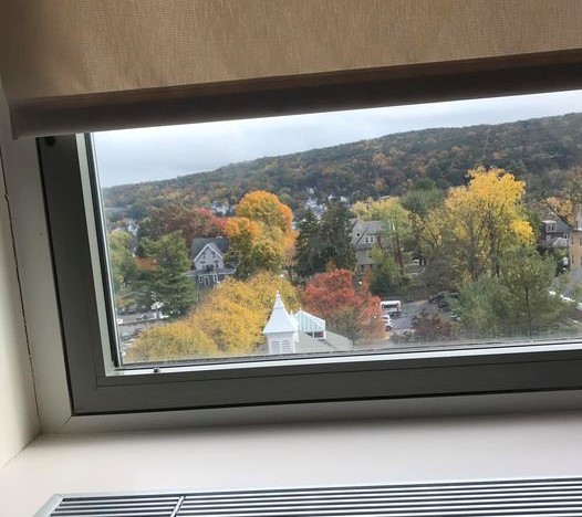 Meanwhile, I spent much of the day awaiting a visit from my surgeon to talk to me about the surgery and anything good and/or bad associated with it. I didn’t totally give up on a visit until after 9 PM. By that time, I was back in the chair instead of on the bed, finding it much more comfortable once I realized it had a footrest like a recliner. I also had a pretty view out of my 8th floor window, at least until sundown. I sat there, feet propped up and blanket wrapped around my bare legs, dozing off at times and at times just resting. This was my view: