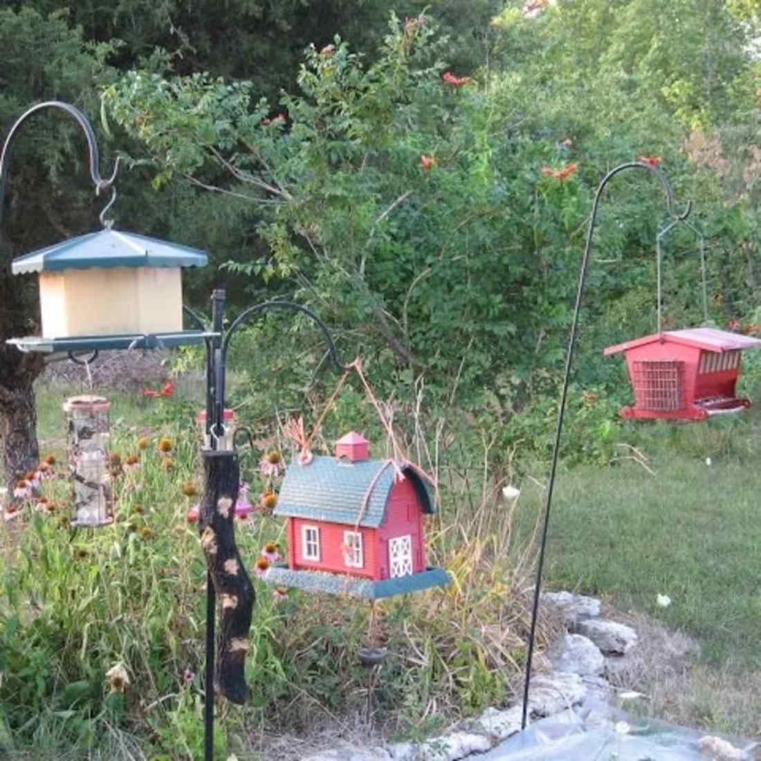 Many of the birds do not ‘fly south’ for the winter, so there is activity to be seen at these feeders all year. I’ve watched them in all kinds of weather, and it seems like they like the hot weather the least, since most of them are at the feeders early and don’t spend time there otherwise. But you know what? It’s actually quite a pretty picture when you stand still and watch snowflakes fall on the birds while they partake of some food.
